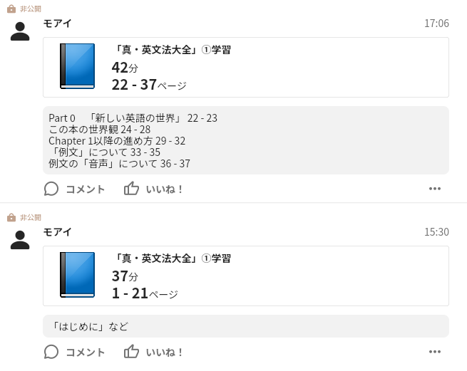 今後は、サブセクション(1-1-1など)ごとに学習します。1つのサブセクションは3〜5ページほどです。まずはそのサブセクションを最後まで通読し、その後にGeminiを使って構文を解析しながら、例文の内容を深く理解していきます。「真・英文法大全」は語彙レベルが少し高めなので、Geminiの助けを借りるほうが効率的に学習を進められると考えています。