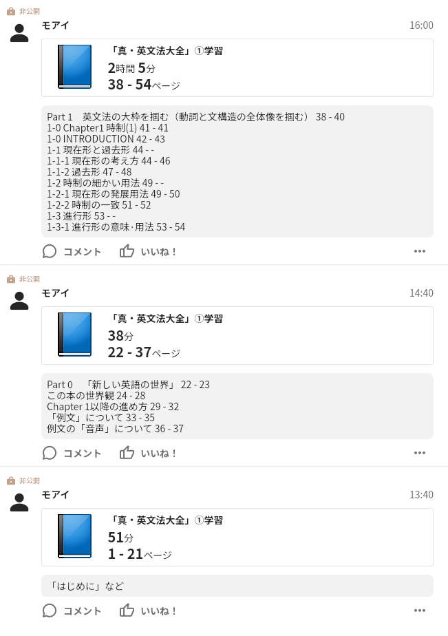 まずは、英文法をマスターするために関正生先生の「真・英文法大全」を読み込みます。解説の理解はもちろん、例文の暗唱にも並行して取り組み、3月上旬には1周読み終えるペースを維持したいです。
